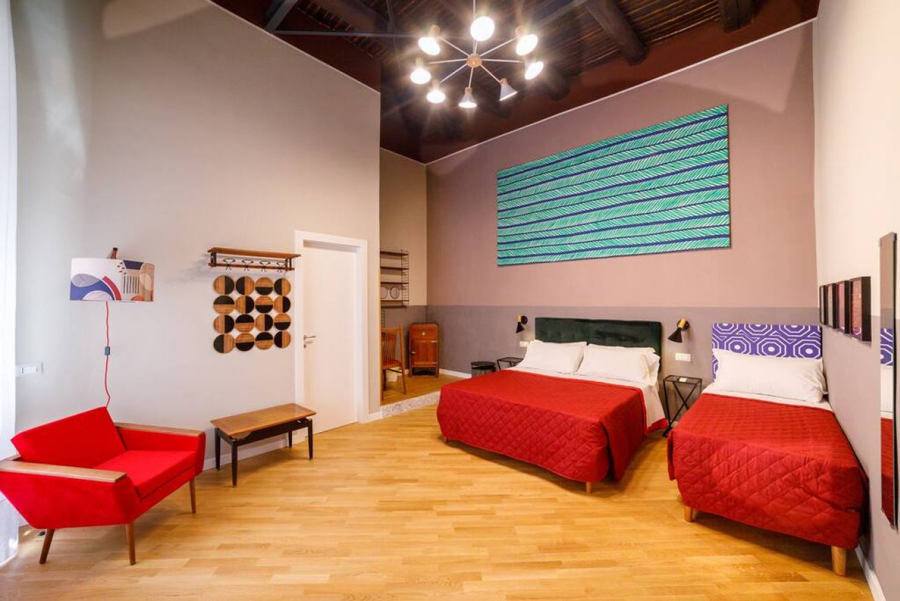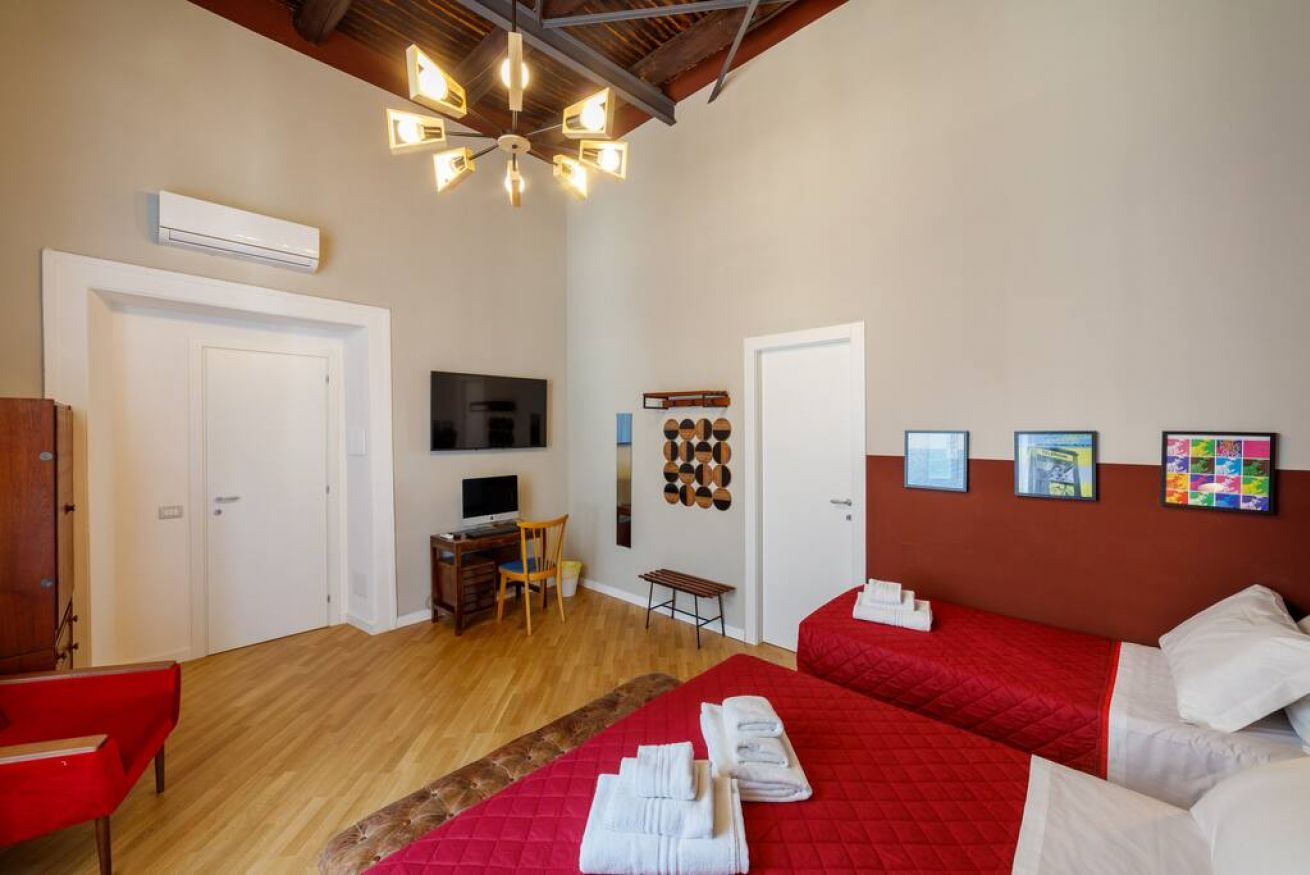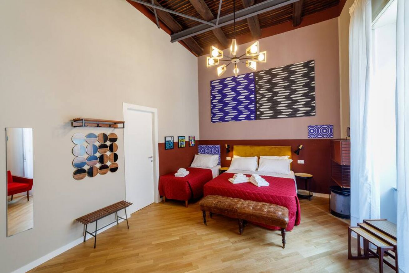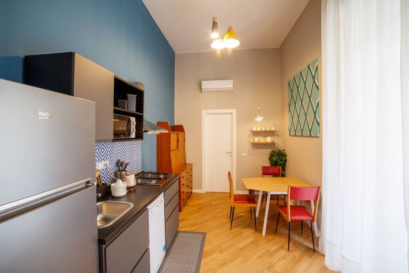 Bellissimo appartamento di Design con balcone e finestre, nella centrale Via San Sebastiano, a pochi metri da Piazza Bellini, via dei Tribunali e Spaccanapoli. Siamo al TERZO PIANO SENZA ASCENSORE. Sono 140mq con 3 Camere da Letto (2 con letto matr. + 3 sing. extra bed, 5 posti, ed una con letto alla francese + 2 singoli) con 2 cucine complete con frigo, lavastoviglie. Ospita fino a 8 persone. Comfort: wifi in fibra, iMac, 3 tv smart 55 pollici, aria cond., lavatrice ed asciugatrice.