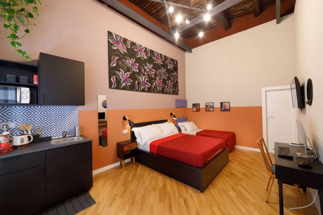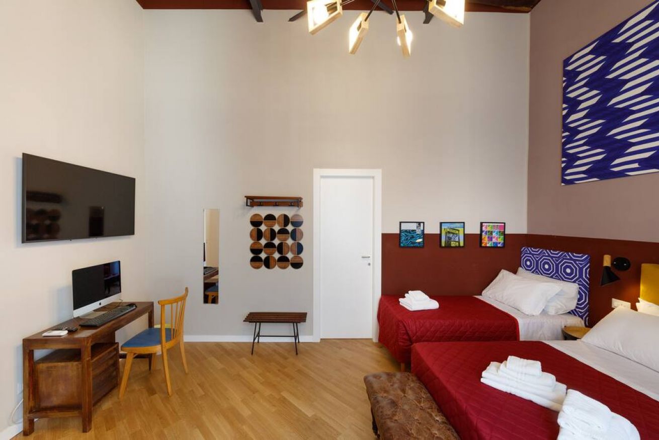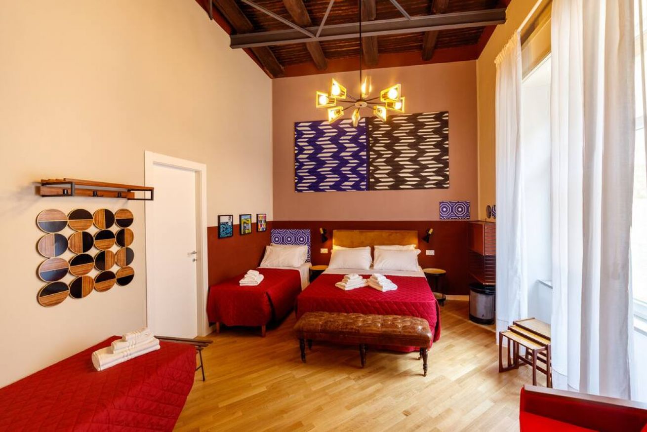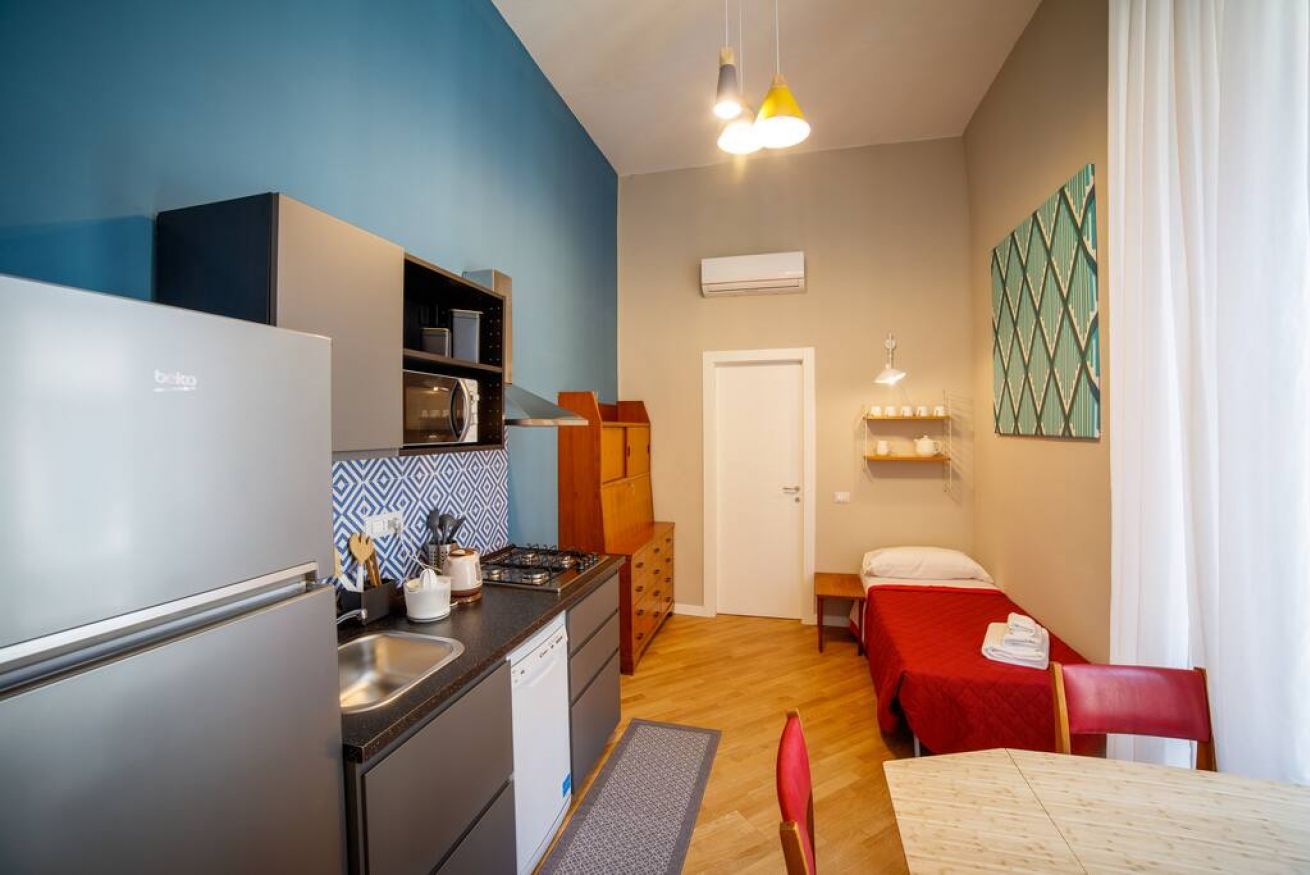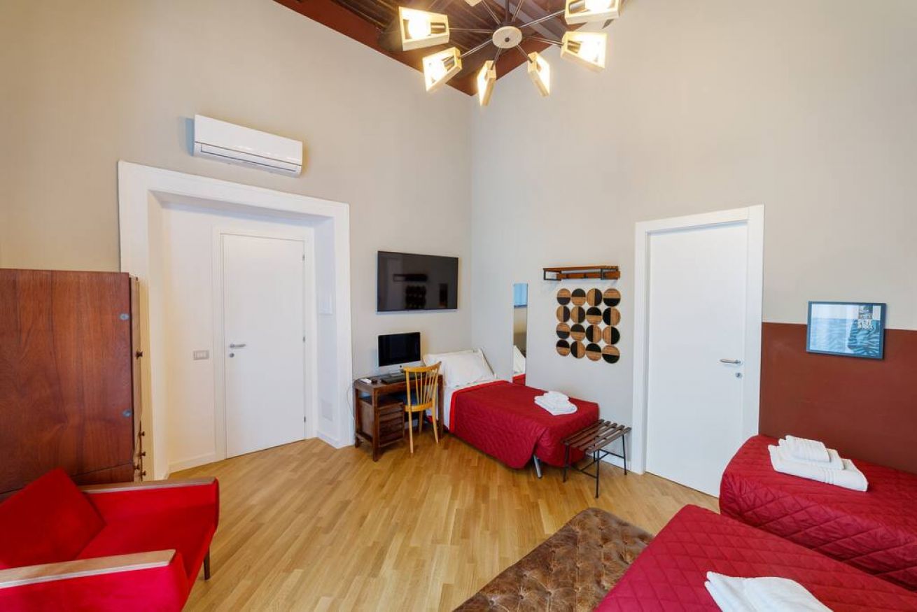 Bellissimo appartamento di Design con balcone e finestre, nella centrale Via San Sebastiano, a pochi metri da Piazza Bellini, via dei Tribunali e Spaccanapoli. Siamo al TERZO PIANO SENZA ASCENSORE. Sono 140mq con 3 Camere da Letto (2 con letto matr. + 3 sing. extra bed, 5 posti, ed una con letto alla francese + 2 singoli) con 2 cucine complete con frigo, lavastoviglie. Ospita fino a 8 persone. Comfort: wifi in fibra, iMac, 3 tv smart 55 pollici, aria cond., lavatrice ed asciugatrice.